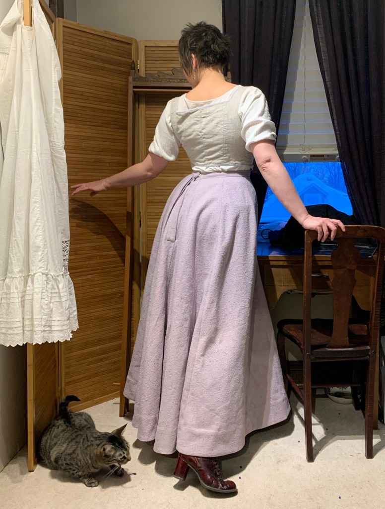 Now, the skirt came out relatively short. This is partly because of fabric limitations and partly because all my Victorian skirts ever have been too long, at least for day wear. I did not want that for this skirt—but I definitely needed to shorten my petticoats.