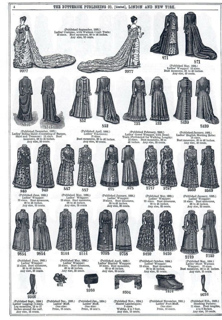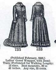 I could’ve gone with the Folkwear Prairie Dress of course, or even the pattern I worked out for the tea gown’s undergown, but instead I decided I needed a “Ladies gored wrapper”… something along the lines of #733 in this Butterick pattern catalogue page.