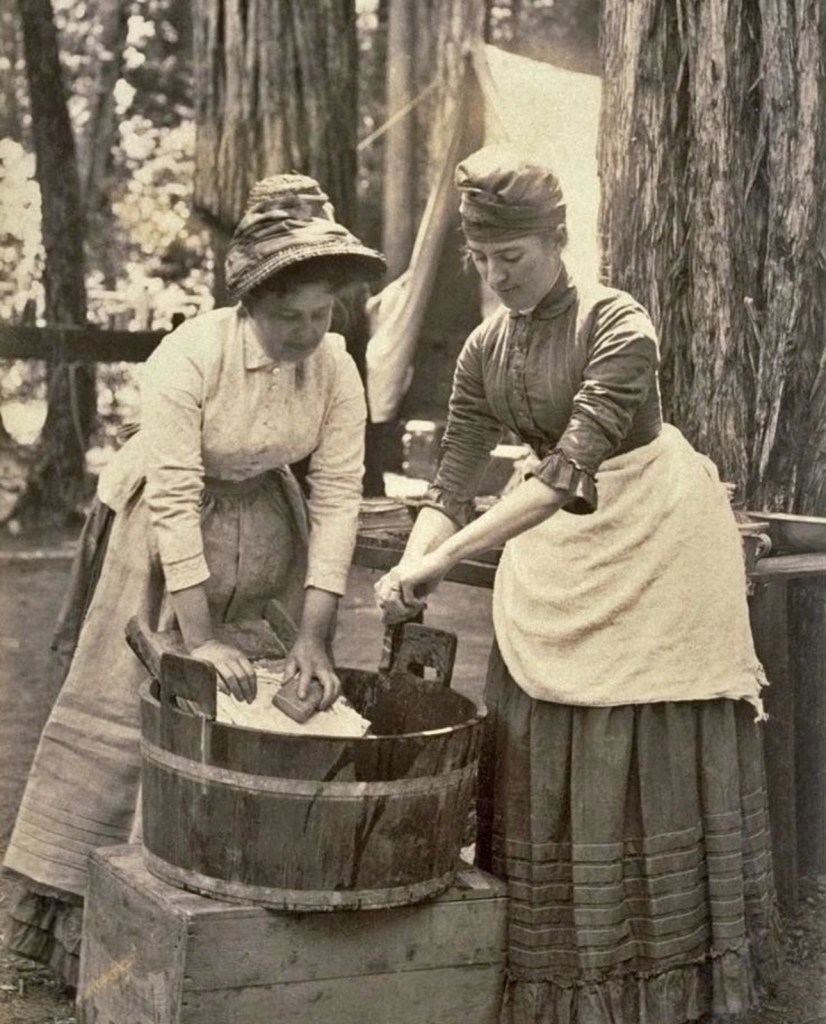 Laundry day itself was fairly successful, at least in that most of the stuff came out cleaner than it went in. It was the first laundry day done at the Marr Residence in ten or more years, I think, and there was a lot of cleaning of the washtubs and other equipment before it could be used to clean clothing. The mangle has a bit of rust in the mechanism that kept dripping reddish water across the rollers, so we had to be sure that was wiped away before running clothes through.