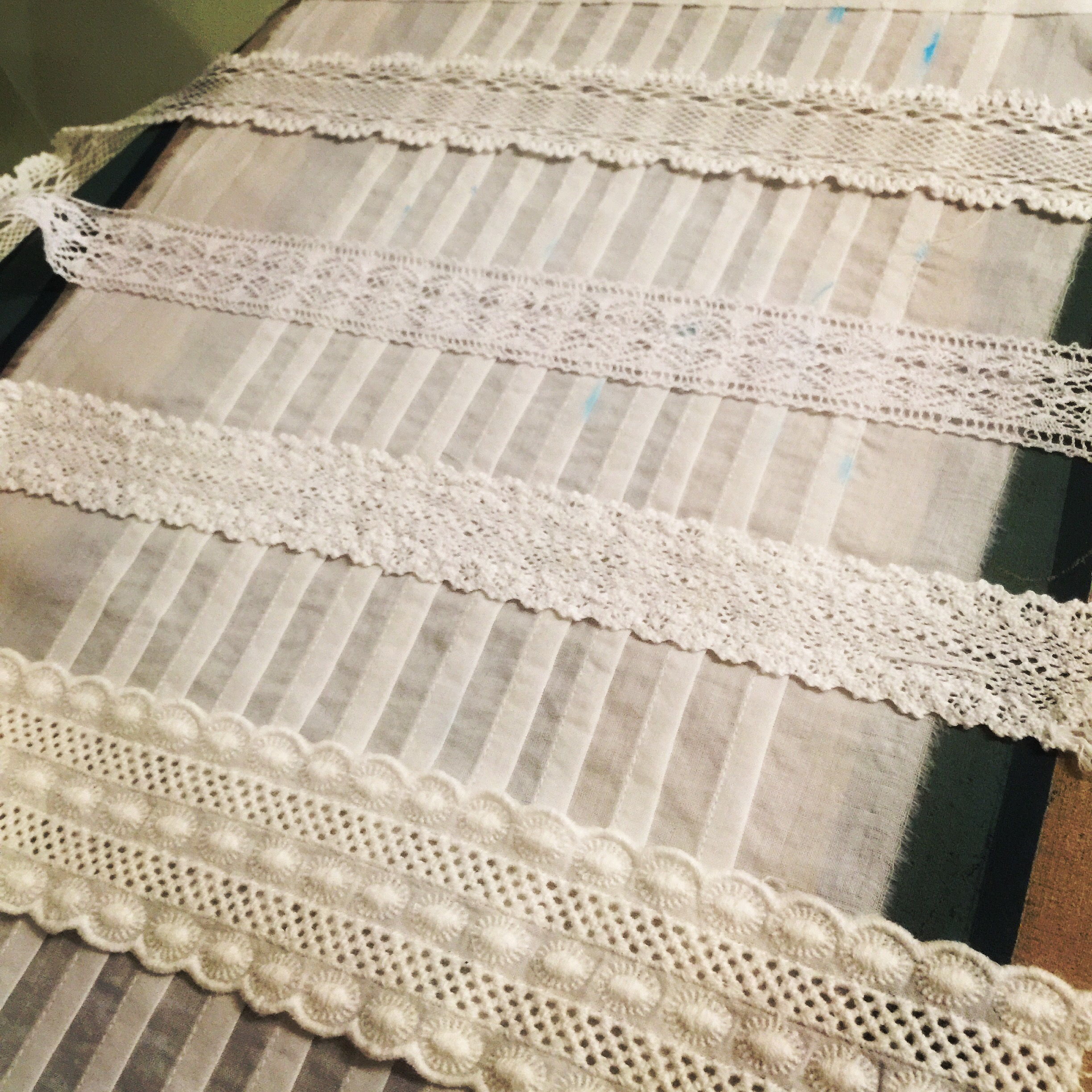 There was, however, nothing left for the longer fronts of the middle layer, what the pattern termed “straight breadths.” Never mind any excess for trimming the bodice. I considered for a long, painful while, but I knew what I had to do: make more edging.