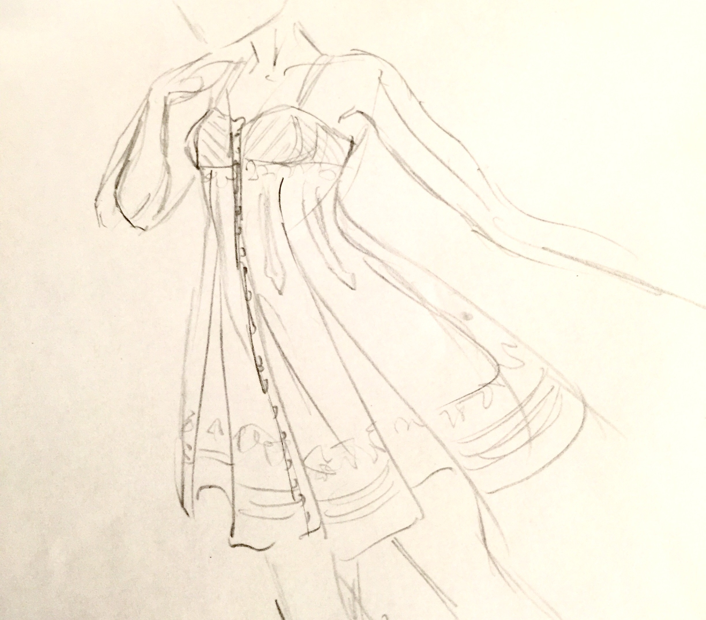 As I had feared, the pattern piece was LARGELY a rectangle. with a very slight curve at one end. So I was basically paying for the marked pleat points, and about two lines of instructions. Ah well. (Actually the terse instructions were really helpful in clarifying the dizzying array of layers on the dress in the image, even if I wasn’t likely to have enough fabric for all of them. )