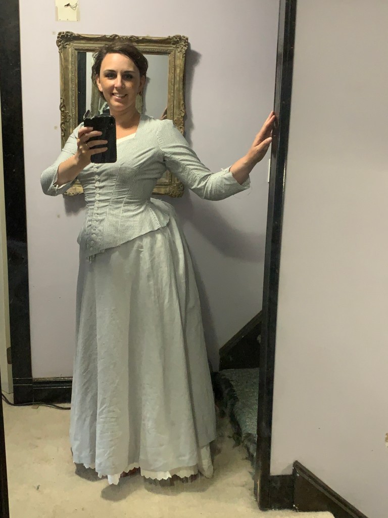 This is part 2 about my “Victorian sundress” project. I drew on two main inspirations for the skirt. One was this blog post from the Fashionable Past, about an extant and very lightweight summer dress (unlined skirt!!!), and the other was this pattern from Etsy, the “Étamine Dress.”