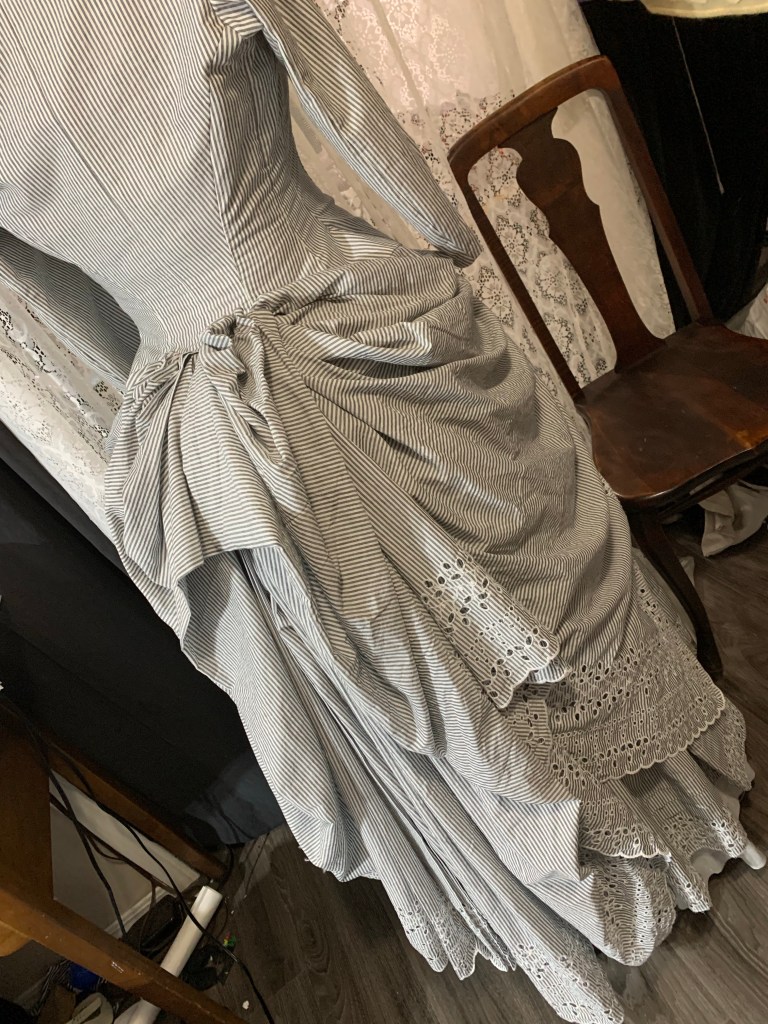 Now, the skirt came out relatively short. This is partly because of fabric limitations and partly because all my Victorian skirts ever have been too long, at least for day wear. I did not want that for this skirt—but I definitely needed to shorten my petticoats.