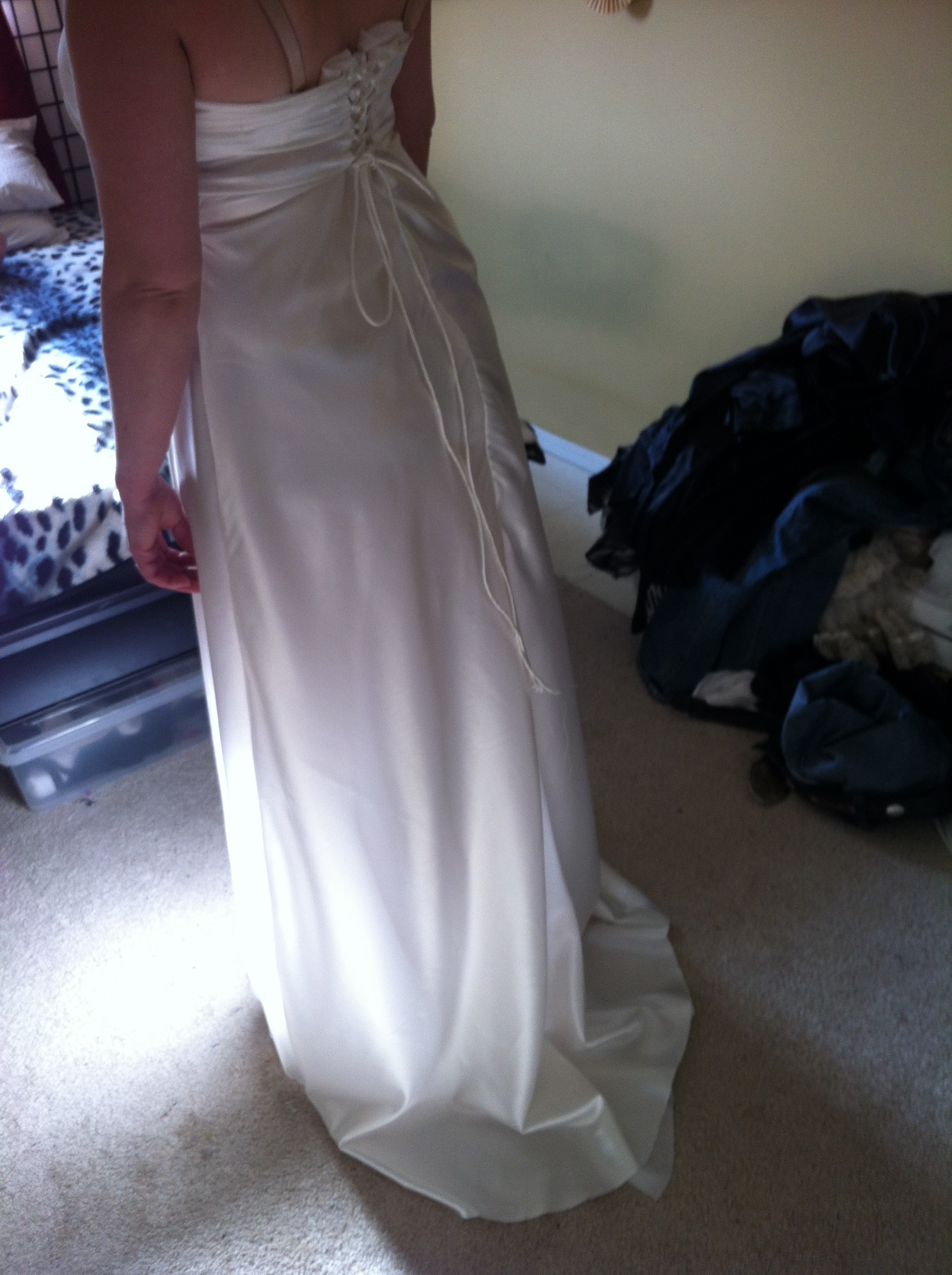 Based on the terse instructions, I actually think the “flat breadths” layer was supposed to be attached directly to the foundation skirt, attaching partway down, even though the illustration doesn’t exactly fit with this idea. But I didn’t want to do it that way, mainly because I feel like I might want to wear the foundation skirt alone for other things. As a result my “straight breadths” are pleated into a twill tape waistband and hike up a bit in the back. If I really wanted I could probably come up with a bit of an upper skirt to mount them to, but at the moment I’m not sure I’ll bother.