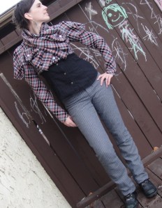 Probably, it will all be fine. I like piping. I like plaid. I have a great excuse for not even trying to match my plaids. The black detailing looks pretty sharp. The neckline may be higher than I wanted, but that’s hardly the end of the world. At least I’m pretty sure this one will be large enough (if not a bit too large, given the stretch in both my fabrics)