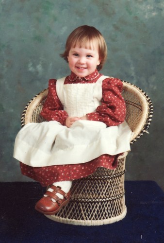 After I left home, and bought my own machine, I did sew for myself, including a long, billowy ‘garden-party’ dress, out of a yellow, dotted-Swiss fabric (I wonder where it went?), a tunic top (of unbleached cotton) which I decorated with multiple bands of machine embroidery around the neck (I think my kids have this one in their dress-up stuff), hem and short sleeves (thanks to the Grand Old Dame)-–-a reflection of my ‘wanna-be Hippie’ years, drapes for apartment windows, a long-sleeved, button-front tunic and matching gored skirt, in a rust-peach print double-knit, for my wedding ensemble. Throw pillows, place-mats with matching, mitered, hemmed napkins, sheer sash-curtains, baby and kid items, including shaped flannel diapers, blue-jeans and aforementioned parka and snow pants, sundresses, Hallowe’ en costumes (thankfully, you were never into figure-skating!) I also sewed an Edwardian Walking Skirt, from a Folkwear pattern, as an interpretive costume for a historic house-museum I became involved with, as well as those ‘ Prairie-Girl’ (Folkwear) dresses and pinafores for you. The last thing I ever sewed for you was a ‘little-house’ inspired skirt and blouse combo, in a blue-and-white flowered print, which I
