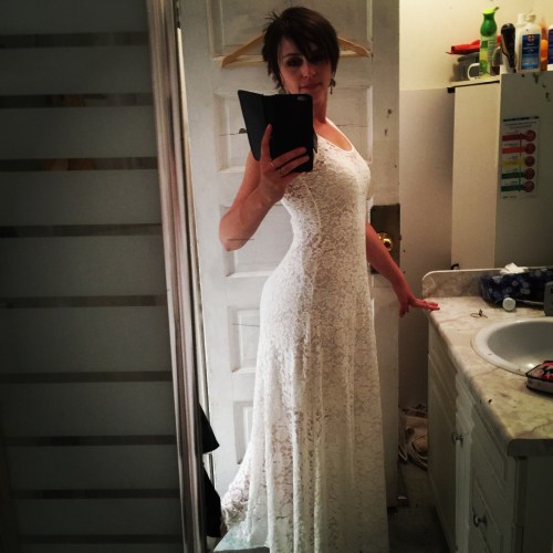 After the fact, I took a bit off the sides to get a closer fit in the back. It’s hard to get dresses like this to cling to the extreme back-curve I have there. The back is pretty wrinkly even when I’m not standing with my hips off to the side, but that’s life with a swayback.