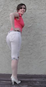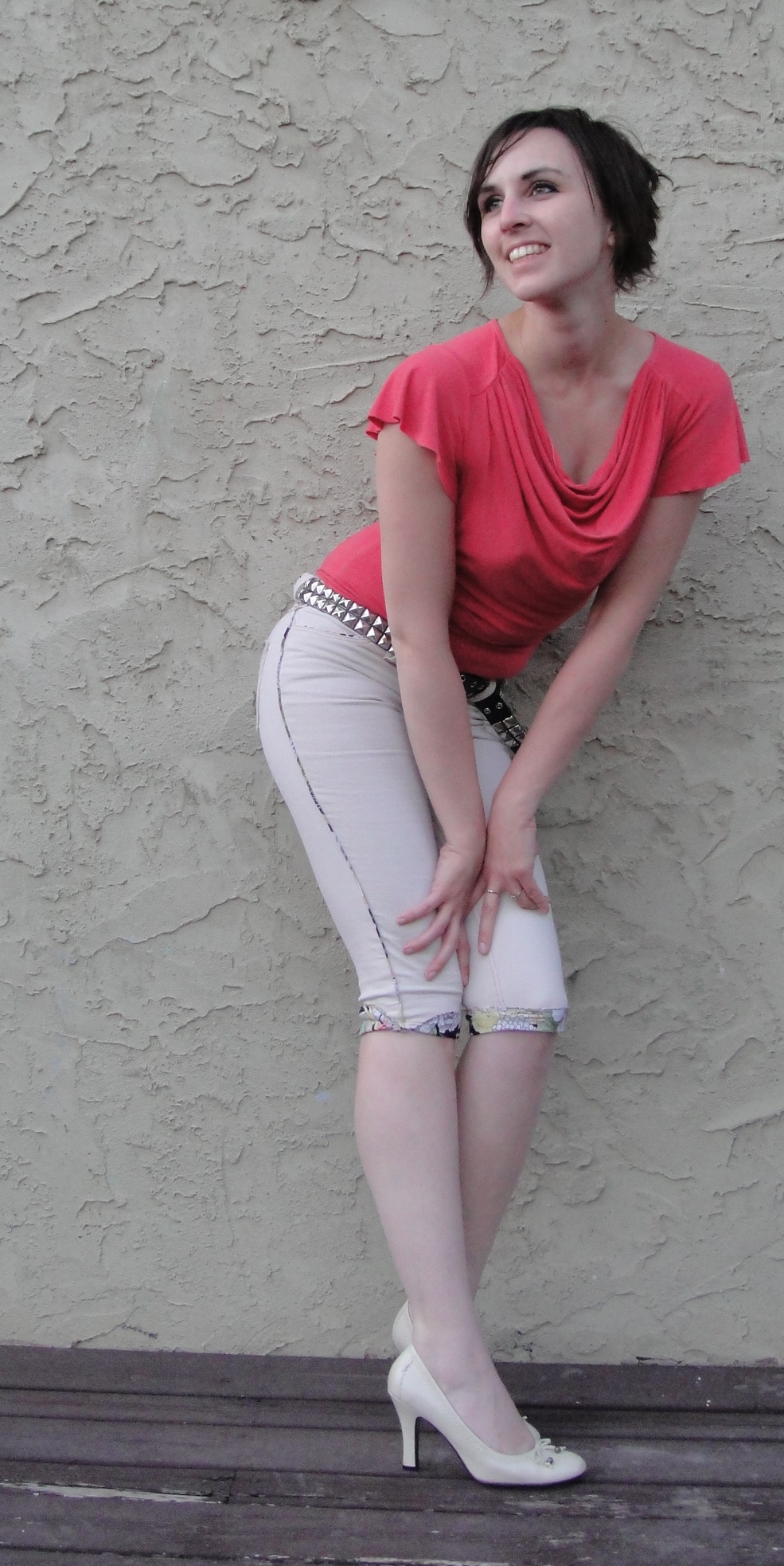 In the mean-time, I’m considering experimenting with some more distressing. I think it would look cool to highlight the ruching, and somehow it’s far less frightening on pants for my kid.