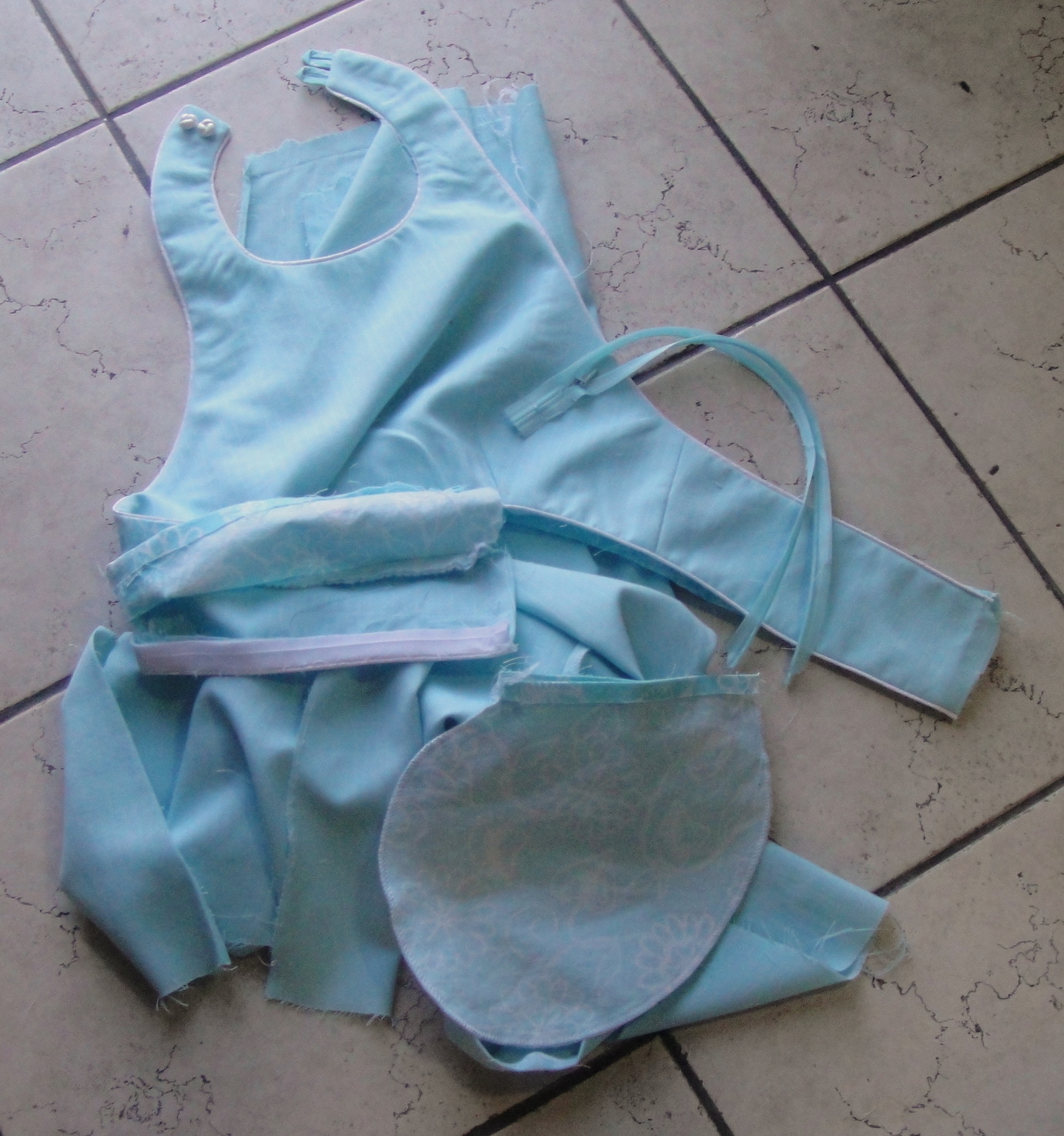 Just to be different, I decided to use the pocket I originally drafted up for my sailor pants last spring. Yup, my pocket. I based the size on it on the size of the pocket I use on my own Jalies, which is actually the pocket from the size K pattern, because I like my jeans-pockets small (I have this theory it will make my butt look bigger, which in my twisted little body-image world is a good thing). And I wanted to incorporate some piping, because I have some rather ratty thrift-store piping in a dusty blue that is kicking around the sewing room and the fact that it has stains every four inches along the length wouldn’t bother me on kids’ jeans.