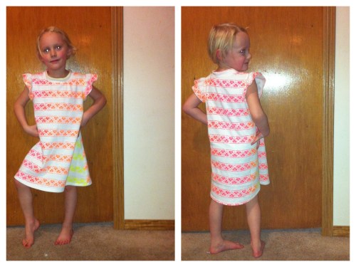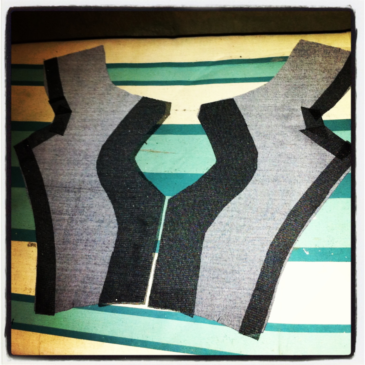 I was worried about the crisp, cut-out appearance of the bodice, so I used lots of knit interfacing. (The pattern only called for a little right at the front opening.) I’m not sure if I used not enough or too much, but I sure didn’t get it just right…