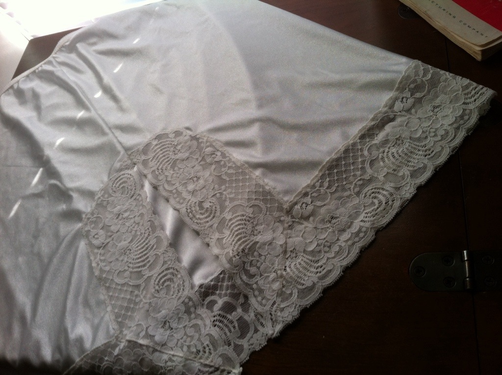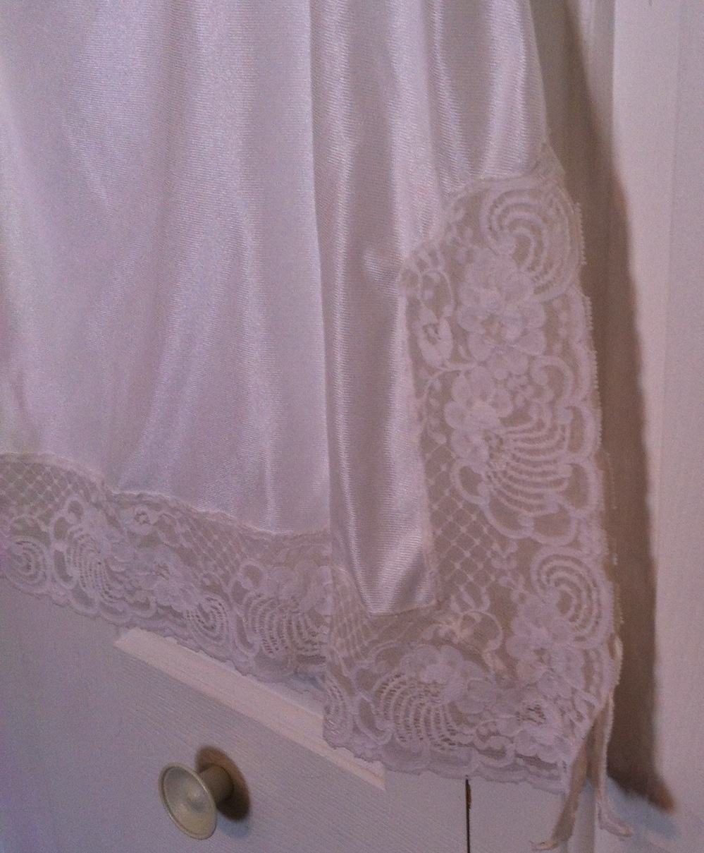 So really, this slip was a learning experience, more than anything else. Practice with techniques and fabrics I haven’t used much. Fun, and weirdly low-key BECAUSE NO ONE WILL SEE IT. I actually want to do it all over again, right away, without the lace, just to see how that compares. And because I’m not entirely convinced the lace will work really well for under the white dresses. Being see-through ‘n all. And without all the fussing with lace-piecing, I think this would be a really quick, easy make.