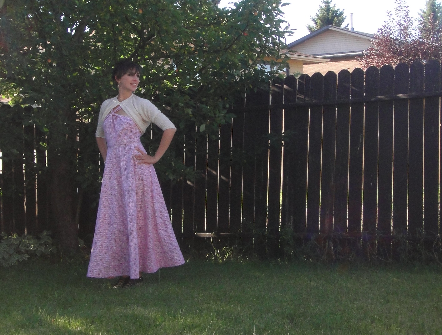 So, fall arrived last week: Monday (Aug. 29) the high was 30C, Tuesday it was 13. It’s finally creeping up again and the forecasts (which I trust about as far as I can spit) are promising highs in the upper 20s for later this week, including my birthday on Wednesday. So this dress is truly ready for summer’s last, last gasp.