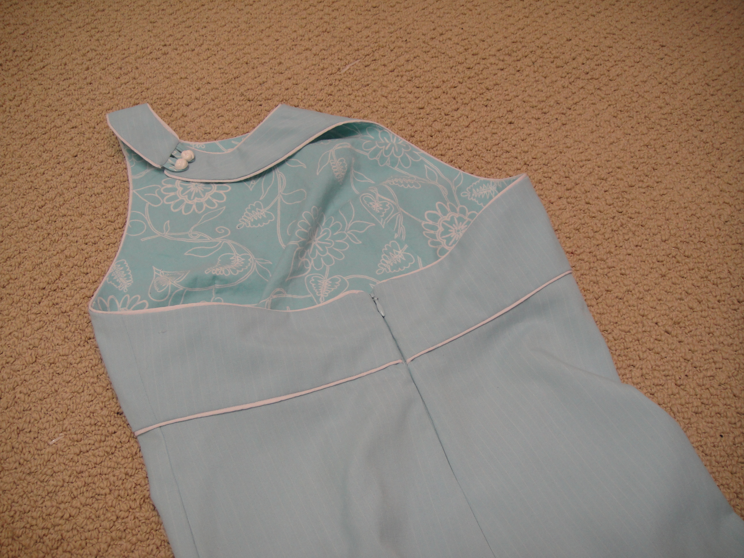 This fabric doesn’t ease so well, did I mention? Well, I mean, it does—there’s no pleats in the seam—but it sure shows the puckers. Not even going to go into how many times it took me to get the zipper straight and smooth and matching up, either. On the up side, I did get it smooth and relatively straight (and relatively invisible!) eventually, so I shan’t whine too much. And I did a slightly better job stitching on the bodice lining on the inside this time, although with all the grading and clipping and fraying from being unpicked so many times it still doesn’t look peachy. But I think I have the theory down, anyway.
