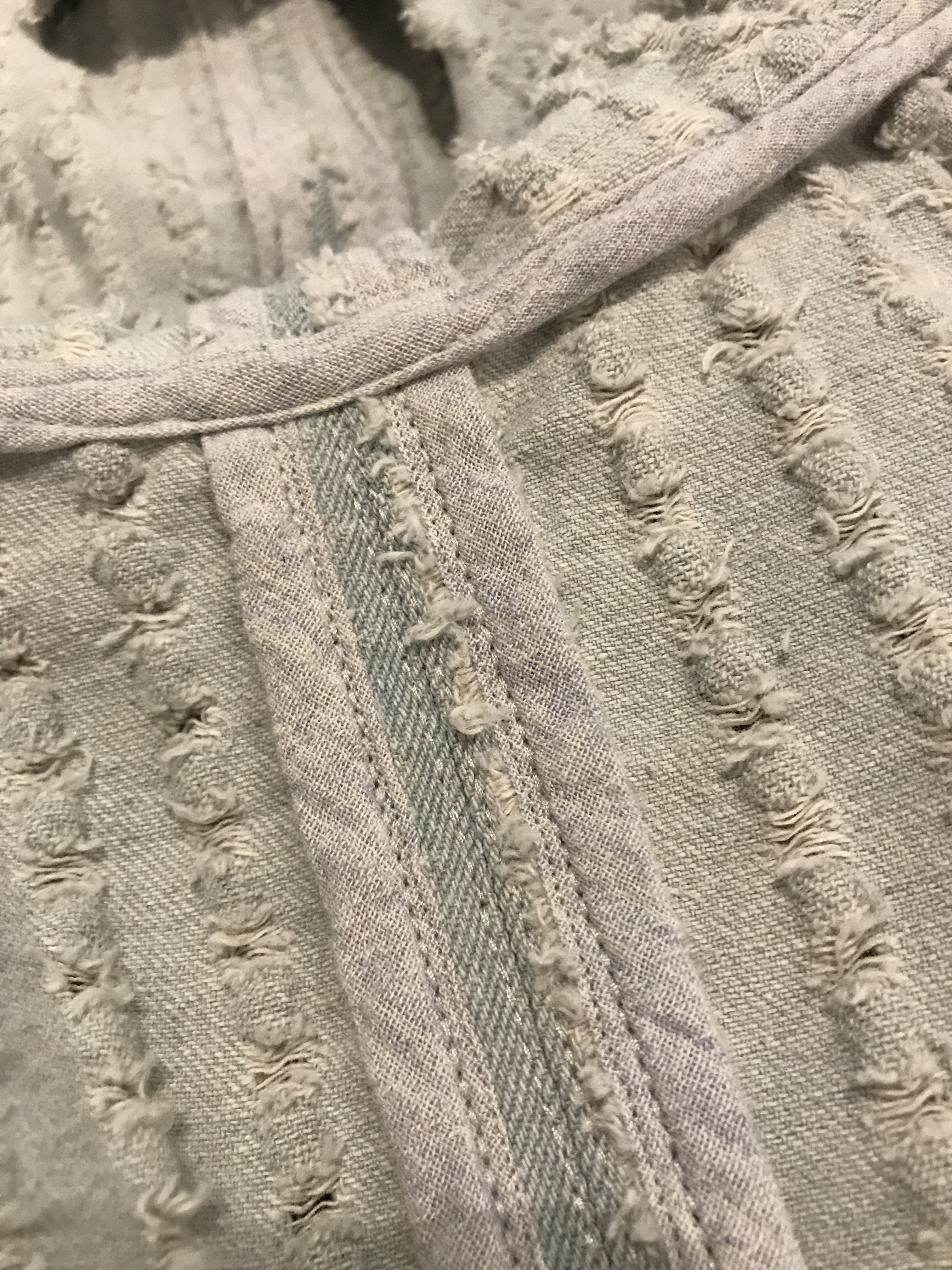 However, Hong Kong binding plus double topstitching does not make for a quick project. I also didn’t go full bore, and had to occasionally interrupt… anyway. It developed slowly.