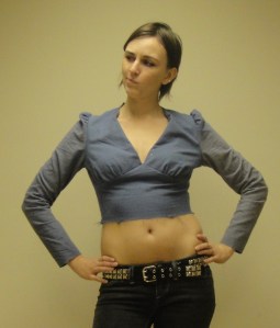 To start with, the pattern ElleC sent me is an old-school size 12, that is for a 32″ bust and 25″ waist. The first is slightly smaller than mine (OK, let’s face it, since this past Christmas it’s a full 2″ smaller, 3″ if I want to wear a bra, which I generally do with wovens.) Having compared the pattern pieces to my body, it actually seemed like the length was going to be all right, and a little bit of pattern measuring suggested that there might almost be enough ease for the bust. The waist, of course, was laughable. Hilarious, really. “Vintage” figure, I do not have. Snerk.