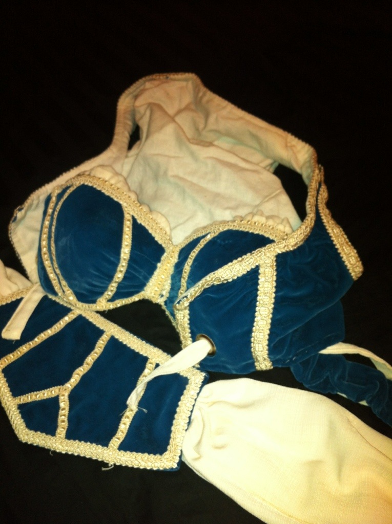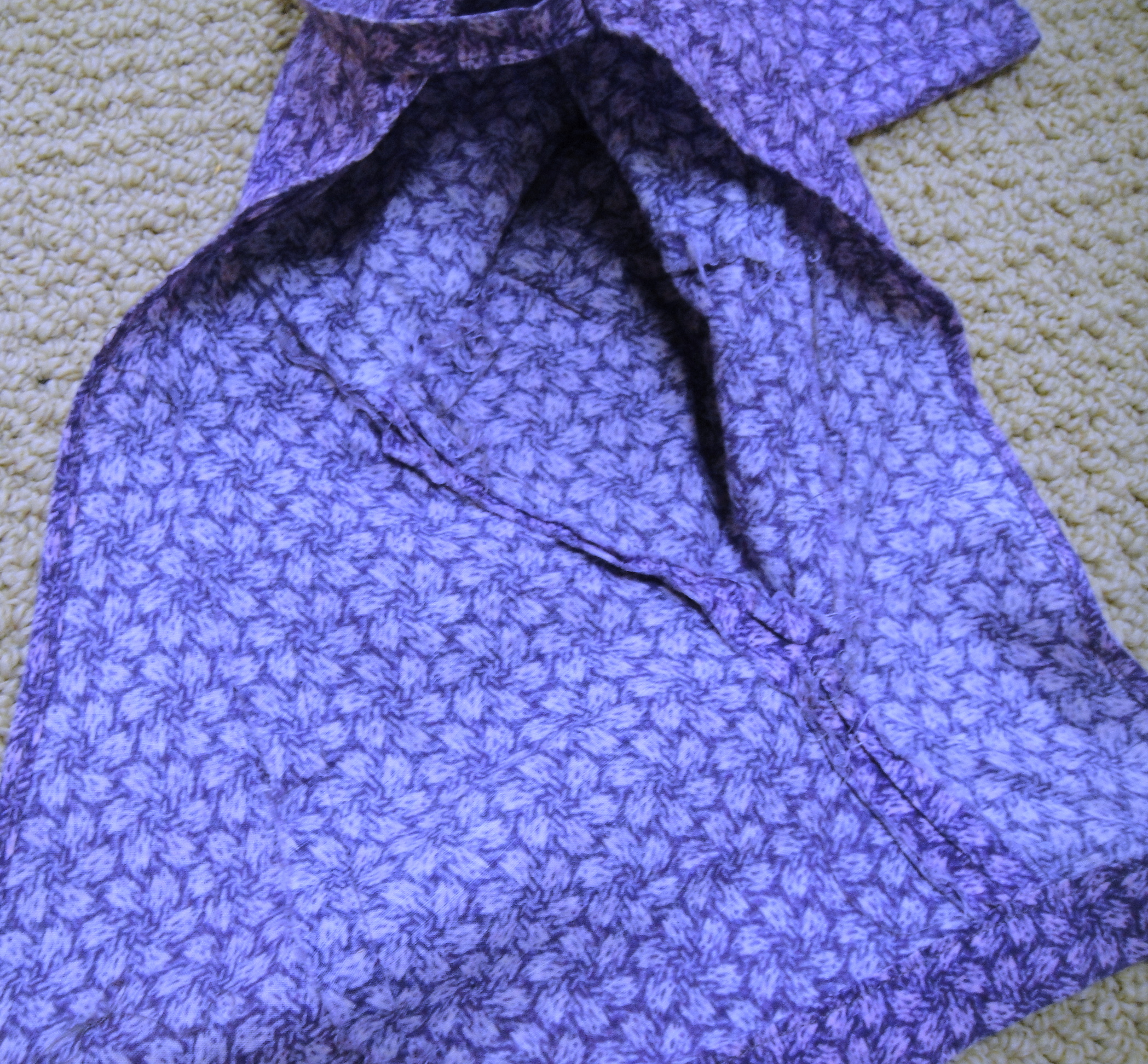 Maybe the coolest feature is this little wedge pieced in at the side of the skirt. My first thought was that she needed a little extra room in the booty, but the piece is only on one side and doesn’t extend into the flounce, so my next thought is that she either was trying to squeeze the pattern out of too little fabric or, had it folded to cut and didn’t notice that a little wedge was missing on the under-side. C’mon, I know you’ve done that too. Can you imagine how much she swore when she figured that out? Or maybe she was an old hand, and just sighed and pieced it in and trusted the texture of the lace to keep anyone from noticing. Although I notice the lace is running in the other direction—which makes me think she was probably short of fabric.