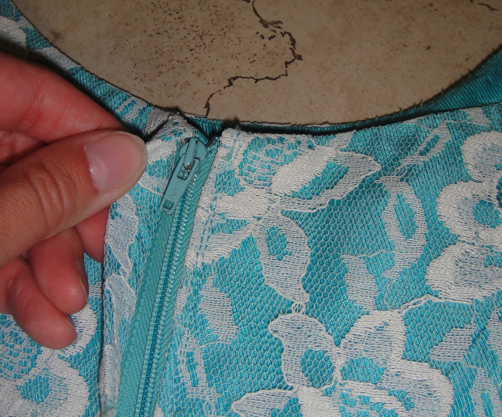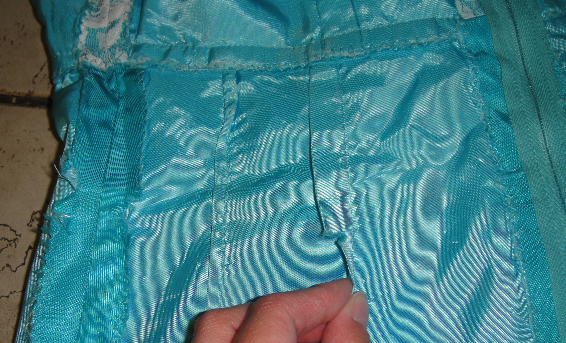 Look at that bright green hem-tape! Did the dress really fade that much? Or was it always meant to be a fun flash of colour?