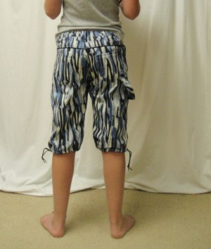 Tyo’s replacement capris are finished. Or is that Bermudas? My shorts terminology is lacking. Can I blame being Canadian? The Patrones magazine calls them “pirata,” which I think is totally awesome.