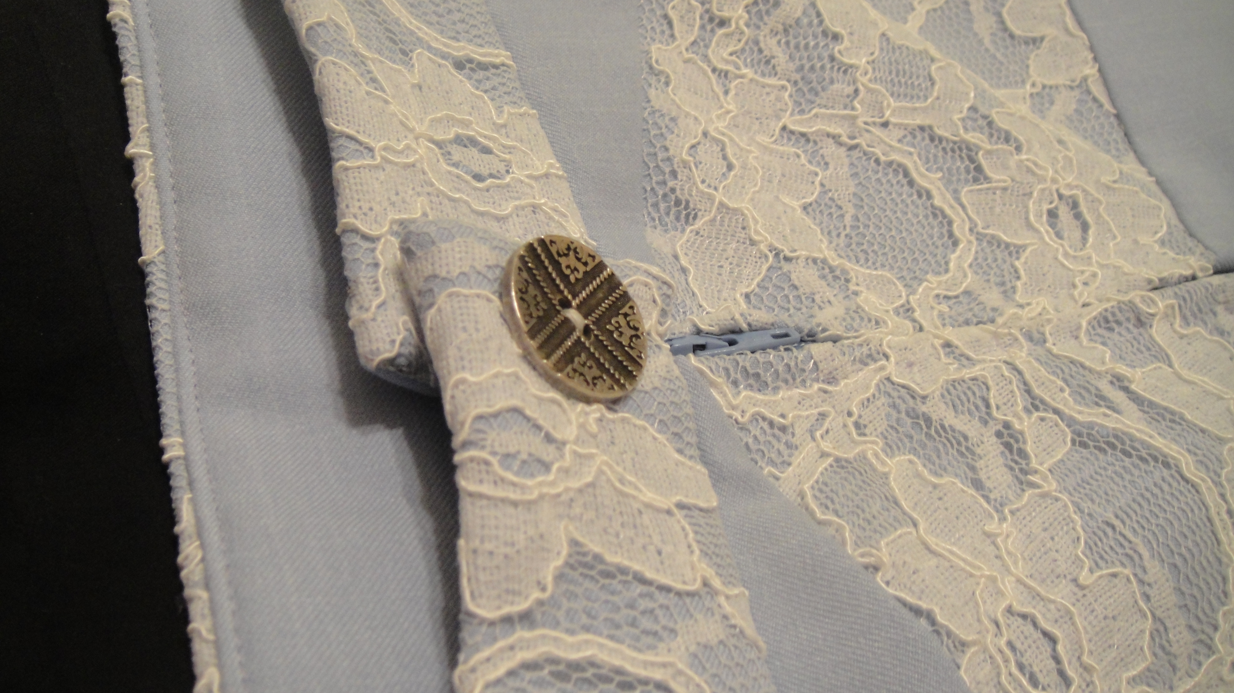 I had almost enough fortitude to face three appliques—so I opted for the asymmetrical thing and put them all on one leg.