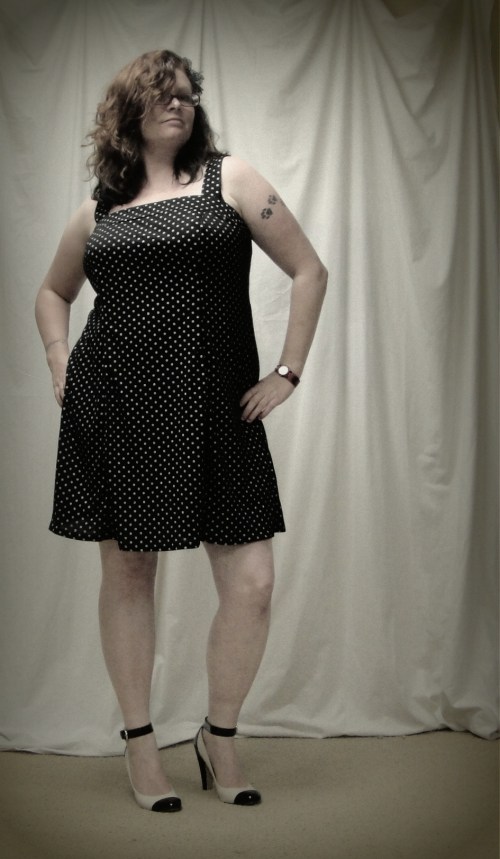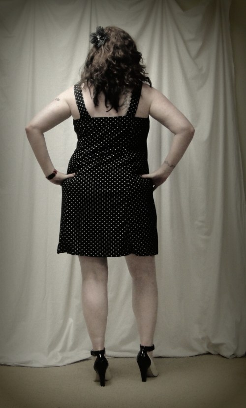 And, voila! Not perfection; it could use a little more shaping in the back, I think. (But then that might also cause more ripples and necessitate that swayback adjustment and stuff.) And the band gapes a bit and we should’ve placed the straps a little closer together for her narrow shoulders. But still pretty smart for a first try, I do think. I am grinning ear to ear every time I see her in it. And it’s not too hard to throw a sweater over, either, since it’s, um, not exactly sleeveless season here anymore.