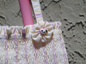 The real experiment for this dress, though, was using my coverstitch machine to do the shirring. No hand-winding the elastic into bobbins that always run out at the worst moment! This experiment was inspired by me noticing that the twins’ shirred storebought dresses are, in fact, stitched with a chain stitch. Which my coverstitch can, of course, do.