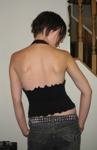 The only thing missing, I fear, is pockets. Side seam weren’t an option (since there are no side seams) and patch just didn’t seem right. Also there’s that gathered seam right over prime pocket territory. I don’t know if it’ll be too much of an issue as I think this is going to have to be more of a special occasion dress anyway.