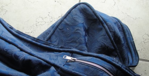 On the up side, I got the tight curves of the cuffs sewn much more smoothly than I usually manage, so I’m kinda stoked about that. I shortened my stitch length and sewed slowly but continuously. At times like this I really wish my machine had a slow setting, but anyway. I also used the trick where you press the seam of the cuff open before turning it, and it really does help the curve turn more smoothly. Who knew? (Yes, I’m bone-headed that way… it seems like there’s a lot of good sewing advice I hear, but then don’t absorb until I’ve learnt it the hard way.)