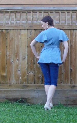 I wasn’t convinced about the sleeves, but figured I’d give them a try, and it turns out I quite like the long, swingy flutter-shape, and how they’re inserted forward of the side-seam, which I think is rather slimming. There is possibly a bit of the linebacker look happening.