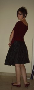 Here you go. In this particular (heavy) fabric, with the interfaced hem, it’s actually not a striking difference. I have noticed one thing about wearing the petticoat, however—it makes a skirt much warmer, as its fluffiness fills in that air-space between legs and skirt remarkably effectively. Still not as warm as pants, but much better than a skirt without petticoat.