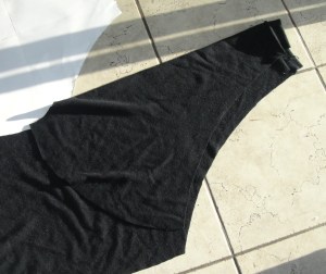 Recommended Fabric: 1 m (or yard) of sweater-knit, 60″ (150 cm) wide (slightly narrower might work, but not much). Pattern includes 6mm (1/4″) seam allowances; I used the serger for all construction, but any stretch-stitch would do.