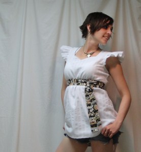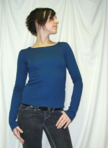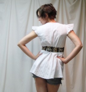 In fact, the fit of the whole thing is pretty fabulous. As promised, it’s snug through the bust with a teensy bit of ease in the midriff, just enough to not feel like a stuffed sausage, without feeling odd about the difference between the bust-ease and the waist-ease. Now, just for the record, I made the 35|| size, that’s 35″ bust, rectangular shape. Steph recommends it for those with 8″ or less difference between bust and waist.