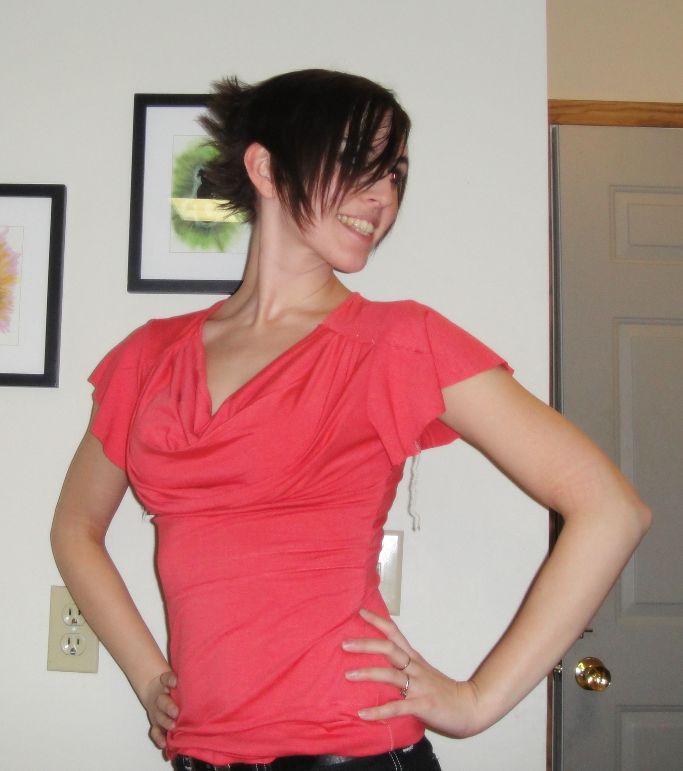 I think the only thing I’ll change next time is lowering the neck-scoop a little more. Like an inch or two. It’s a bit high for my taste, and maybe a bit higher than in the version Steph drafted for herself. My neck-binding is standing up a bit, but I think that has everything to do with the fabric not stretching enough to make a nice, flat binding.