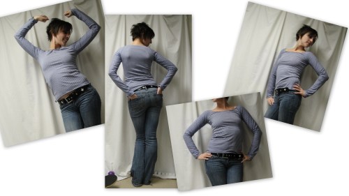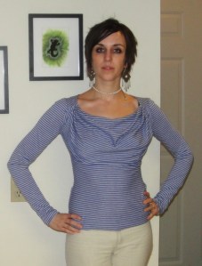 This is not, obviously, the Bird on a Wire fabric. Seeing as Spoonflower knits are like $27/m, I figured a wearable muslin was in order. This stripey stuff (formerly seen in the Where’s Waldo shirt) was like $3/m. That works.
